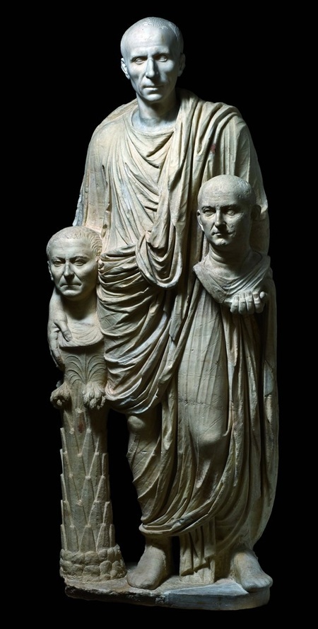 La peinture de portraits, qui assurait entre générations la transmission de l’image parfaitement ressemblante des figures, est tombée en désuétude. On fait désormais des écussons en bronze, des effigies en argent : insensible à la différence des figures, on permute les têtes des statues […] Du temps de nos ancêtres, on n’étalait pas dans les atriums des statues d’étrangers, des bronzes ou des marbres ; les bustes en cire avaient chacun leur niche, images toujours à même d’accompagner les obsèques familiales, et un mort pouvait être sûr de se voir cortégé par tous ses ascendants.