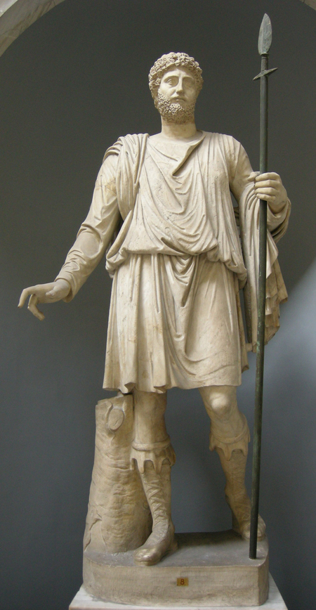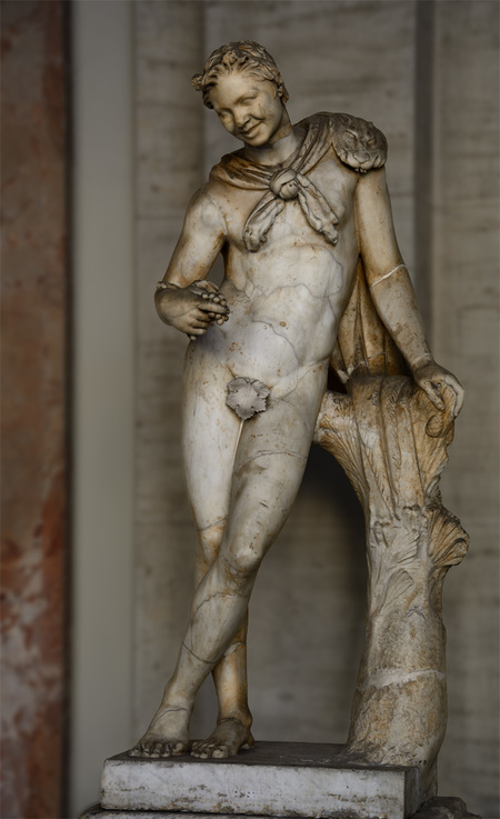 Dans l’ordre : jolie divinité fluviale ouvrante ; lion de fontaine attendrissant, posant comme un mythe – l’hybridité n’est pas toujours infamante – mais se sachant bestiole ; suit un chasseur difforme ; un poète en toge ; une double peine (tête remplacée, génitales biffées) ; en clôture, LA beauté vertigineuse du genre : une tête non pertinente portant deux têtes d’origine…
