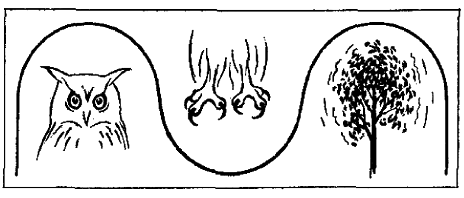 Dans la perspective mystique de Jousse, une chose est son action essentielle, c'est-à-dire son gestuaire en situation de puissance symbolique ou d'aisance, celui qui fait d'elle une sorte de propulseur symbolique. Ici, le hibou est dit "ocularisant", c'est-à-dire un zyeuteur/regardeur hypnotique. Cette image, qu'on qualifierait dans nos sociétés d'élucubration anthropocentrée, se comprend d'une lecture fétichiste du vivant, dont Anthropos est partie.