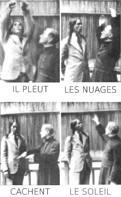 Fig 1. Marcel Jousse et le chef sioux Os-Ko-Mon. Interaction mimée : il pleut, les nuages cachent le soleil.
