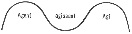 Fig 3. Schéma Agent – agissant – Agi (rôles sémantiques ainsi définis par la linguistique traditionnelle: agent – instrument – patient)