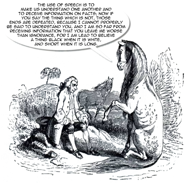 Ausfahrt 6. Gulliver et un houyhnhnm (citation arrangée d'après Swift)